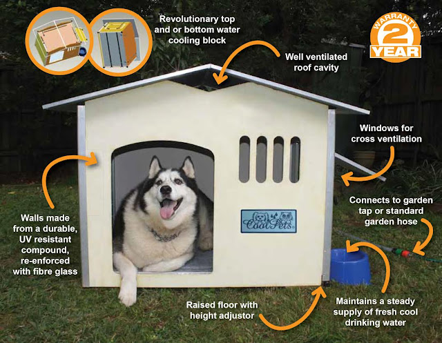 CoolPets is a small innovative Australian company that launched the revolutionary water-cooled dog house, which reduces temperatures by up to 15°C in full sun. The Deluxe model features both a top and bottom water cooling block, a ventilated roof cavity and two windows for cross ventilation.