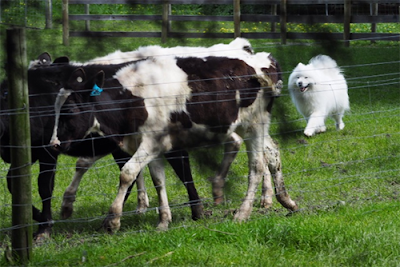 | Margarite Frost's Samoyed, Tai easily controls cattle |