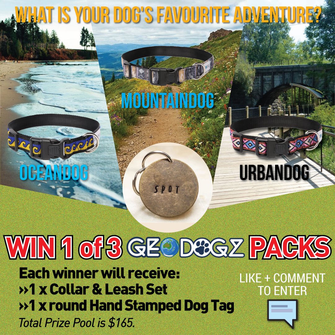 Thanks to Australian brand GEODOGZ you could win one of 3 prize packs of their earthly adventurous pet gear for your dog. Their range includes dog collars, leashes and harnesses in matching styles plus a choice of hand stamped personalised dog tags.