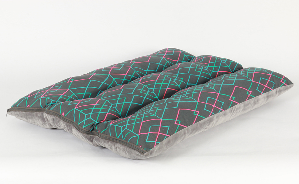 Featuring a modern patterned design on one side and plush fabric on the other, the cover can be easily removed for washing.