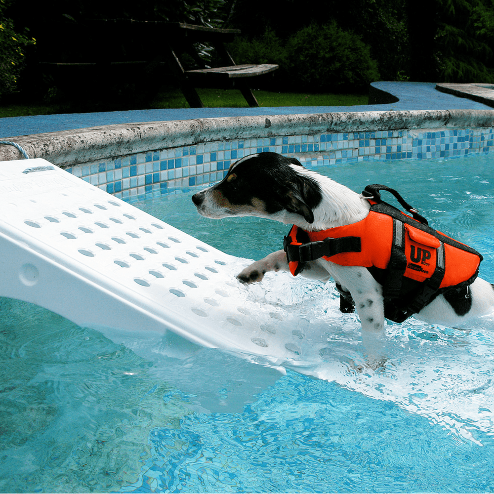 Please note you will need to train your dog to use the ramp to exit your pool or pond.