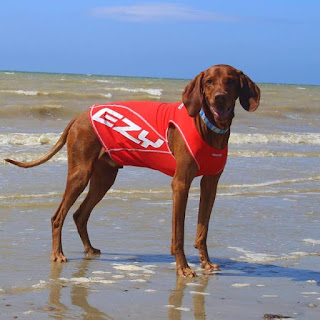 You can keep your beach-loving pooch cool and protected from harmful UV rays with an EzyDog Rashie.