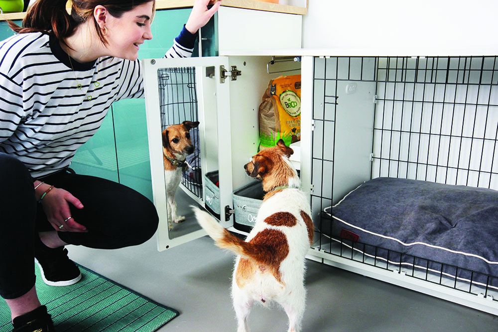 It has an optional wardrobe, which is an incredibly practical solution for storing your new puppy’s food, treats, accessories and toys all in one handy place.