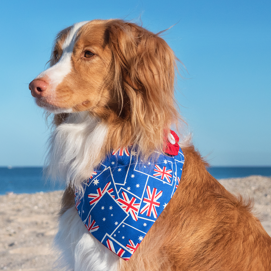 Get your pup into the Australia Day spirit this January 26th 2018 with an Australia Day flag dog bandana, handmade in Adelaide by Vintage Pup Designs.