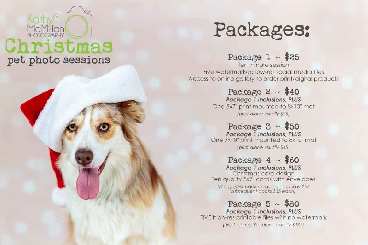 She is partnering with local companion animal businesses to run Christmas Pet Photo Sessions during November and the first week of December.