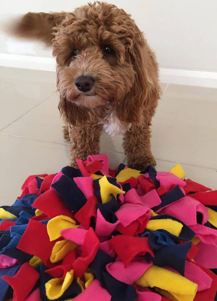 The Snuffler Mat provides great mental stimulation for your dogs as they will need to work for their treats! The mats are all handmade using a thick safety rubber mat as a base and quality fleece tied in knots as a cover.