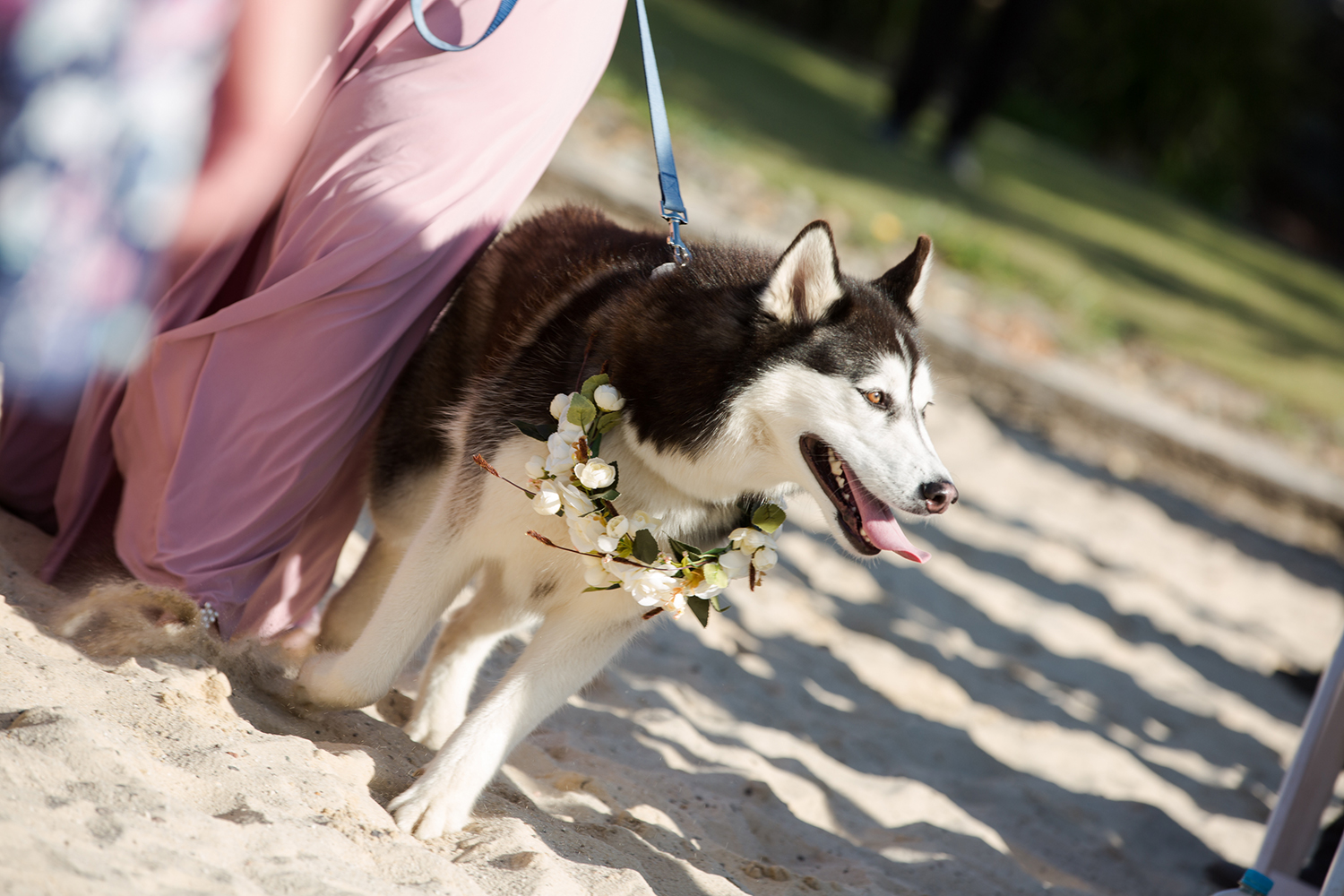 Expert advice: “Having your dog on a lead will be useful if they are unlikely to follow instruction and will get easily distracted. You might also want one of the wedding party to be responsible for walking the dog down the aisle, and a lead means that your dog will hopefully follow that person instead of stopping to say hello to each guest.”